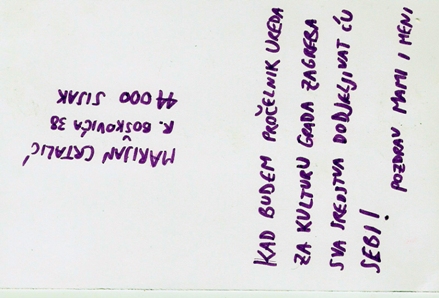 A participatory project in which participants project their visions of the future onto city postcards. Once the visual appearance is altered and textual content is added, the postcards are sent to addresses chosen by the authors. The involvement in the creation of a fictional future world forms a collective pictorial and textual manifest of symbolic interlacement of past, current and future worlds.