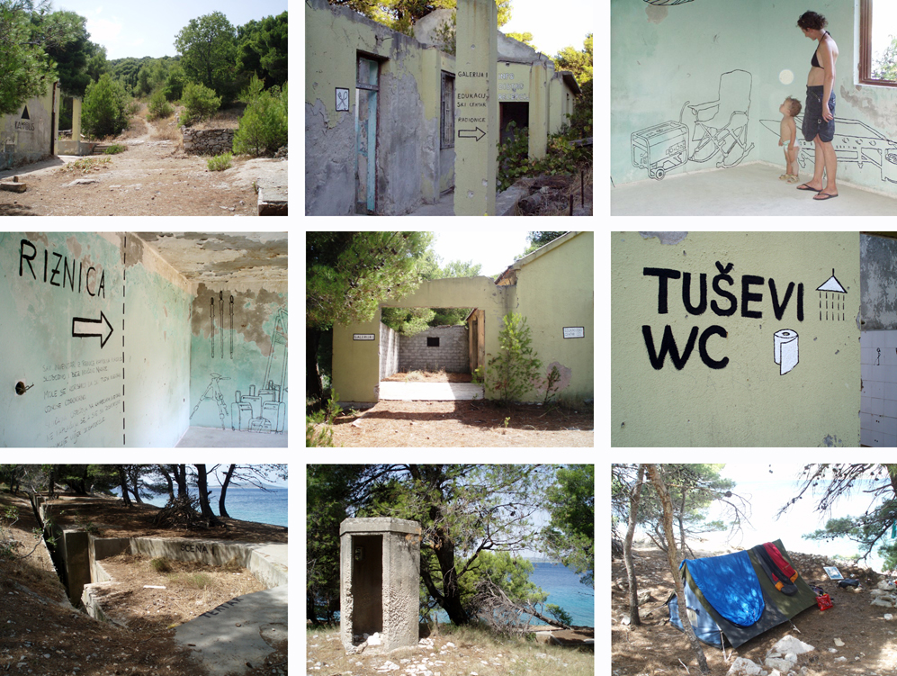 “Kampolis is a fantasy dreamt by Tonka Maleković and Lina Rica, a utopian revitalization of the abandoned and devastated military facilities on Cape Marin. This small marine complex had been a